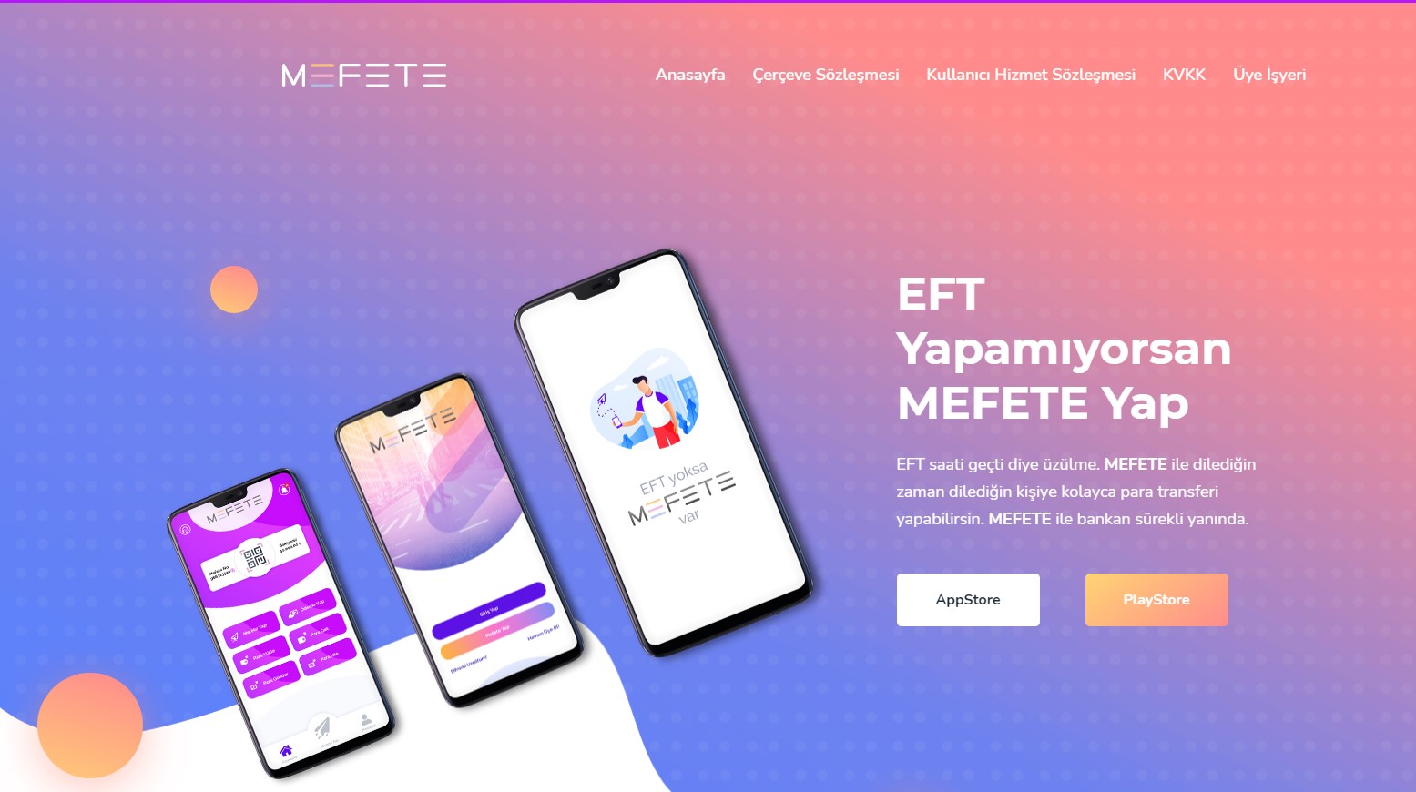 Elektronik cüzdan altyapısıyla birlikte müşterilerine 7/24 para transferi hizmeti sunan Mefete, ülkemizde tasarruf sahiplerinin hak ve menfaatlerini korumak, bankalar ve özel finans kurumlarının piyasa disiplini içerisinde sağlıklı, etkin ve dünya ölçeğinde rekabet edebilir bir yapıda işleyişi için uygun ortamı yaratmak ve bu sayede ülkenin uzun vadeli büyümesine ve istikrarına katkıda bulunmak amacıyla kurulan ErpaPay bünyesinde hizmet veren bir mobil uygulamadır. Bir başka deyişle Mefete ile zamandan ve mekândan bağımsız olarak 7/24 güvenli bir şekilde para transferi yapabilirsiniz.